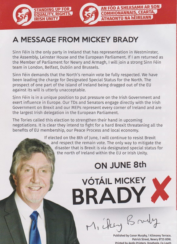 “Brexit is Bad” leaflet from Mickey Brady -Sinn Fein -Newry and Armagh » Mbradybrexit3a