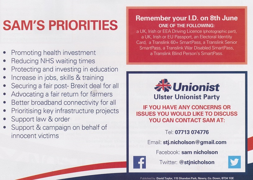 Leaflet from Sam Nicholson -Ulster Unionist -Newry and Armagh » Snichilson2