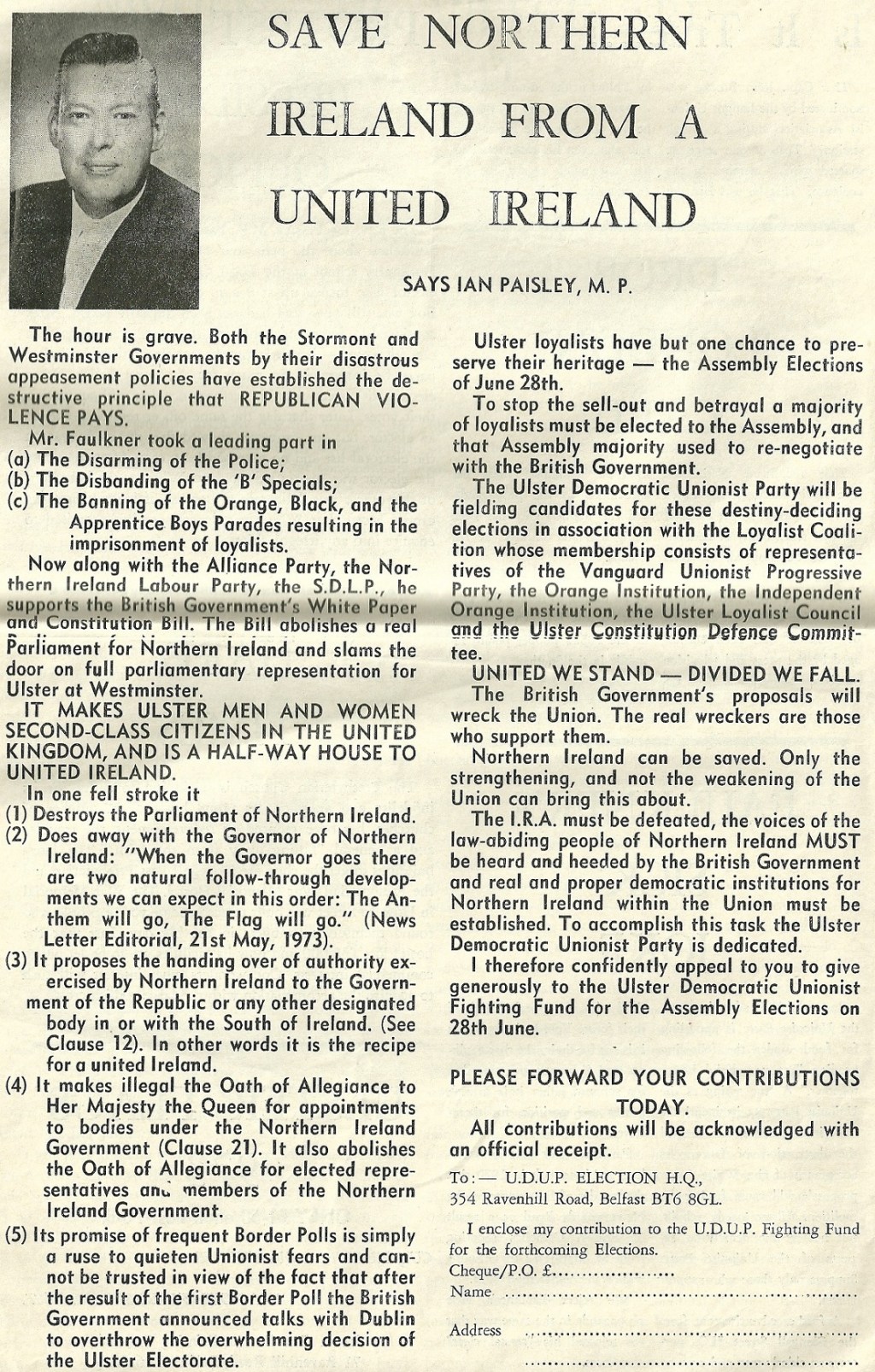 “Save Northern Ireland From A United Ireland” – Ian Paisley 1973 Assembly Elections. » paisely1973