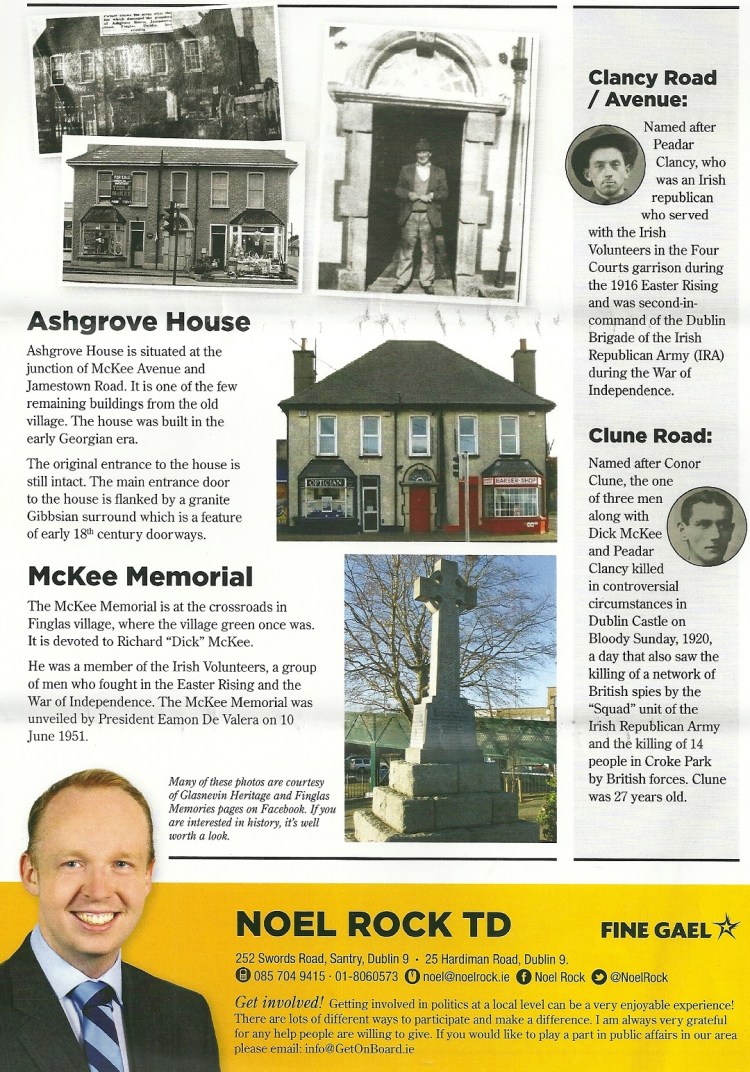 “Finglas Past & Present” a lovely historical leaflet (one of a series) issued by Fine Gael Dublin North West TD Noel Rock.