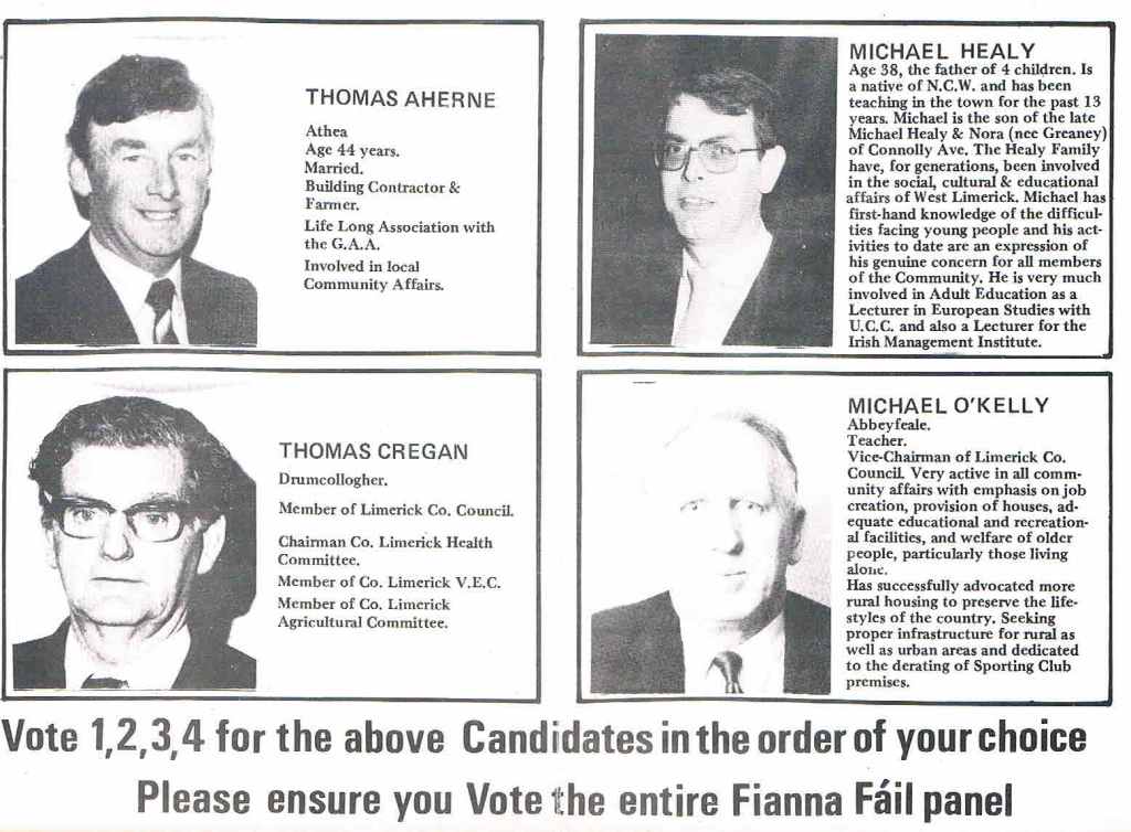 1985 Local Elections leaflet from Fianna Fail in NewcastleWest. » 1985CoCoNWb
