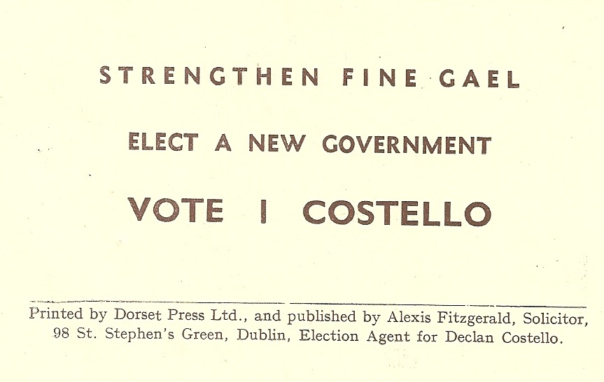 Leaflet from Declan Costello -Fine Gael -1954 General Election – Dublin North West » DCostello1954b