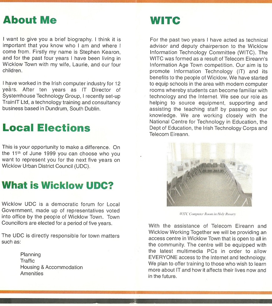 Leaflet from Stephen Kearon -Fianna Fail -1999 Local Elections- Wicklow UDC » skearon99b