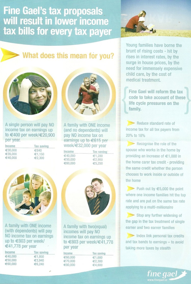 From the 2007 General Election a leaflet from then Councillor Leo Varadkar running for fine Gael in Dublin West. The leaflet has details of Fine Gaels tax plans.