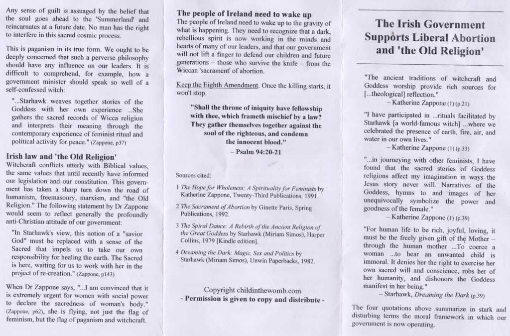 The Irish Government Supports Liberal Abortion and ‘the Old Religion’ -Leaflet from Child in The Womb .com » Abortionwitch