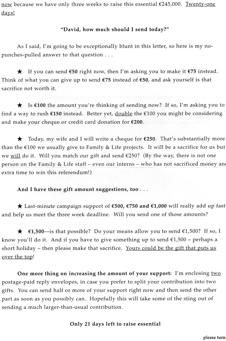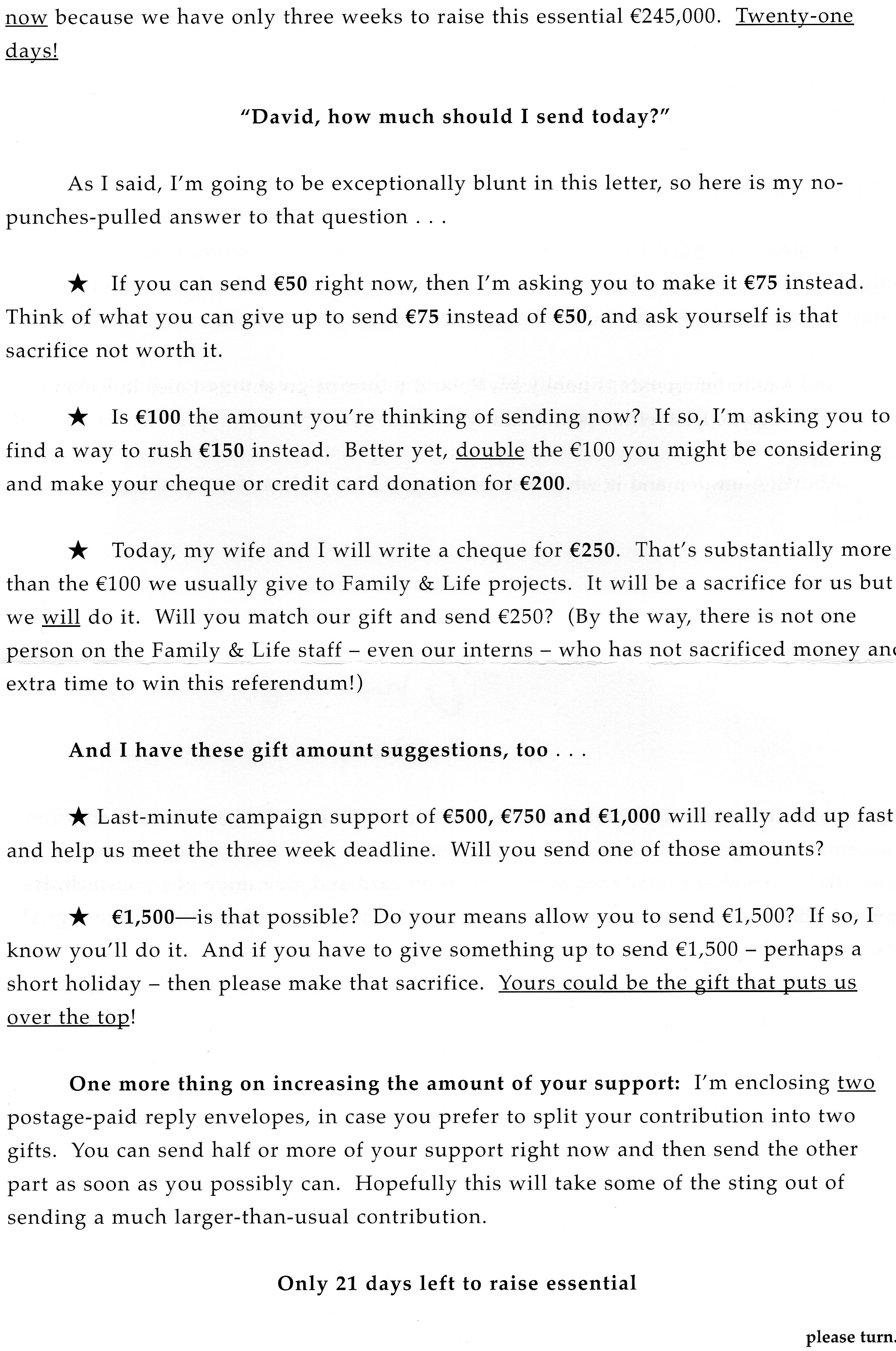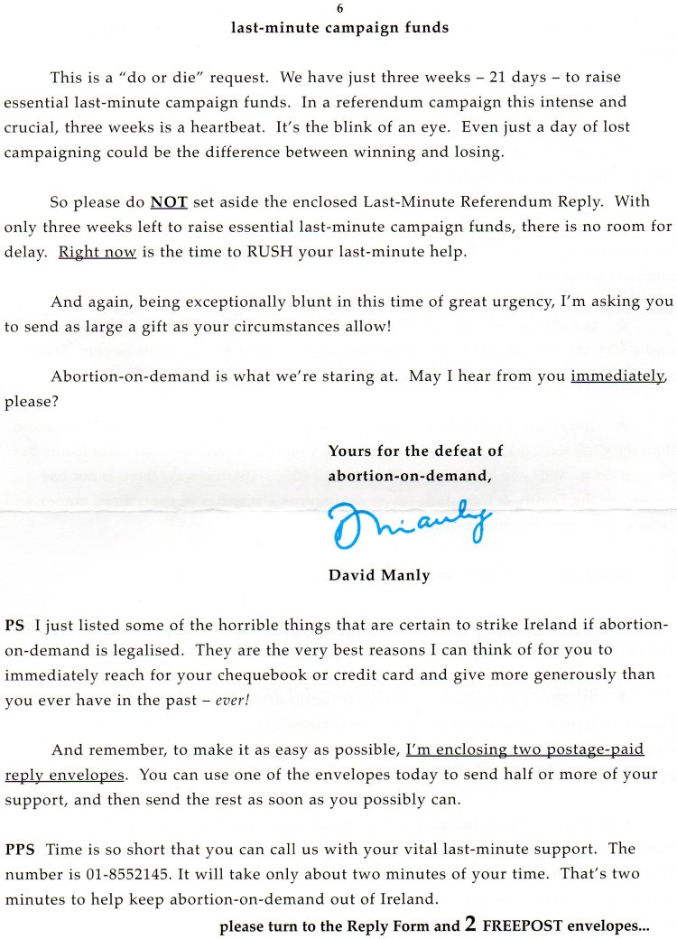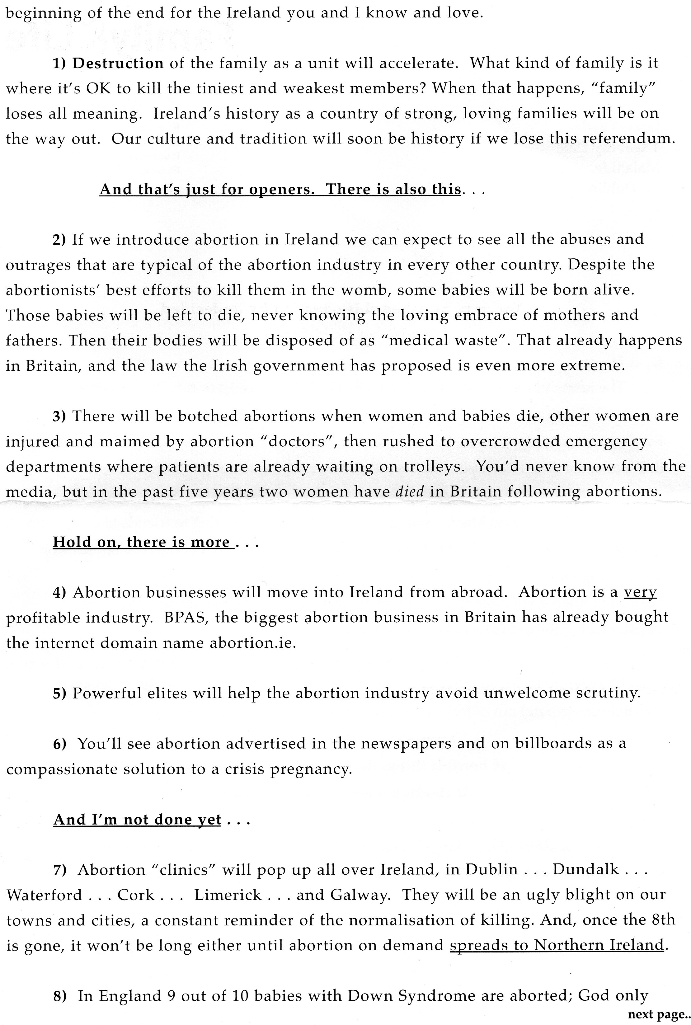 A letter from Family & Life with regard to the 8th Amendment Referendum Campaign outlining what will happen if the Referendum passes. It also has an appeal for funds.