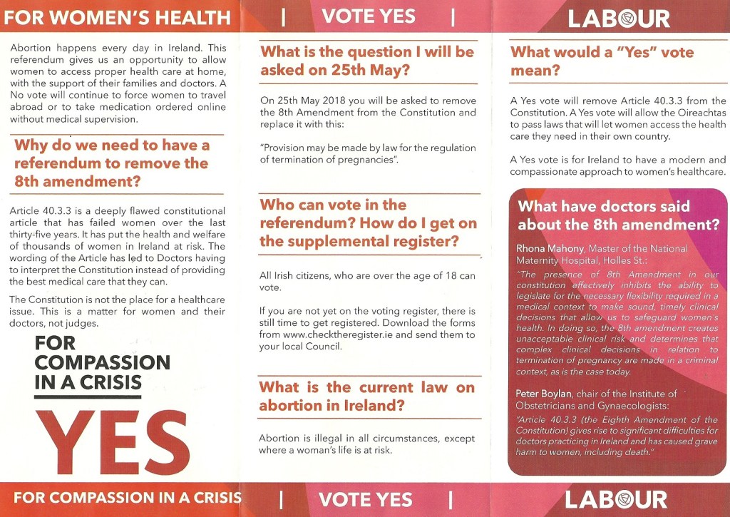 “For Women’s Health” Vote Yes leaflet from Martina Genockey – Labour #Repealthe8th » LabRepeal2