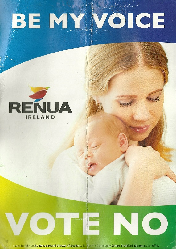 A Leaflet from Tony Murray of Renua Ireland calling for a No Vote in the Referendum to Repeal the 8th Amendment. He is due to be their candidate in Dublin South Central.