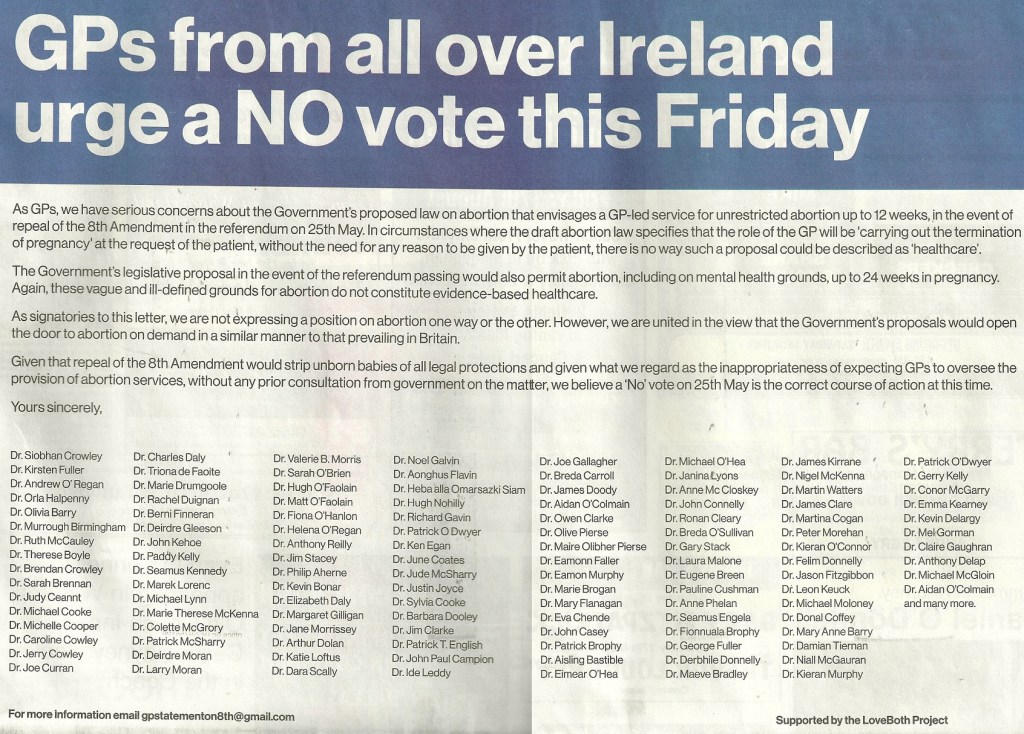 Ad from GPs urging a NO vote in the Abortion Referendum » GPsforNo