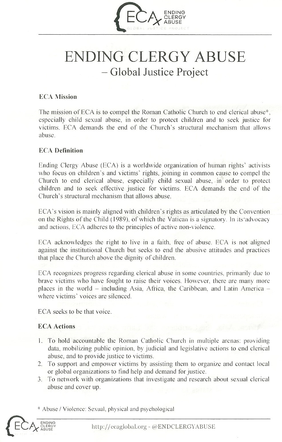 “Pope Francis, We ask you to:” Leaflet from Ending Clergy Abuse » EndingClergyAbuse2