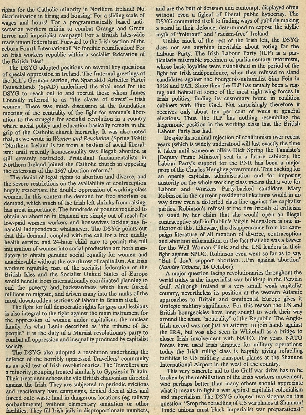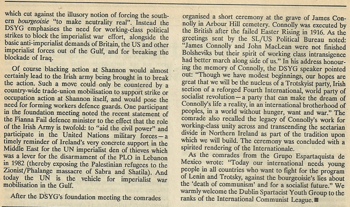 Reprinted from a 1990 issue of Workers Hammer the news that “Dublin Spartacist Youth Group Launched” outlining why there was the need for the group.