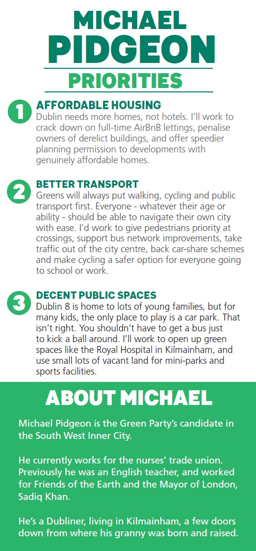 Leaflet from Michael Pidgeon -Green Party -South West Inner City » MPidgeon2