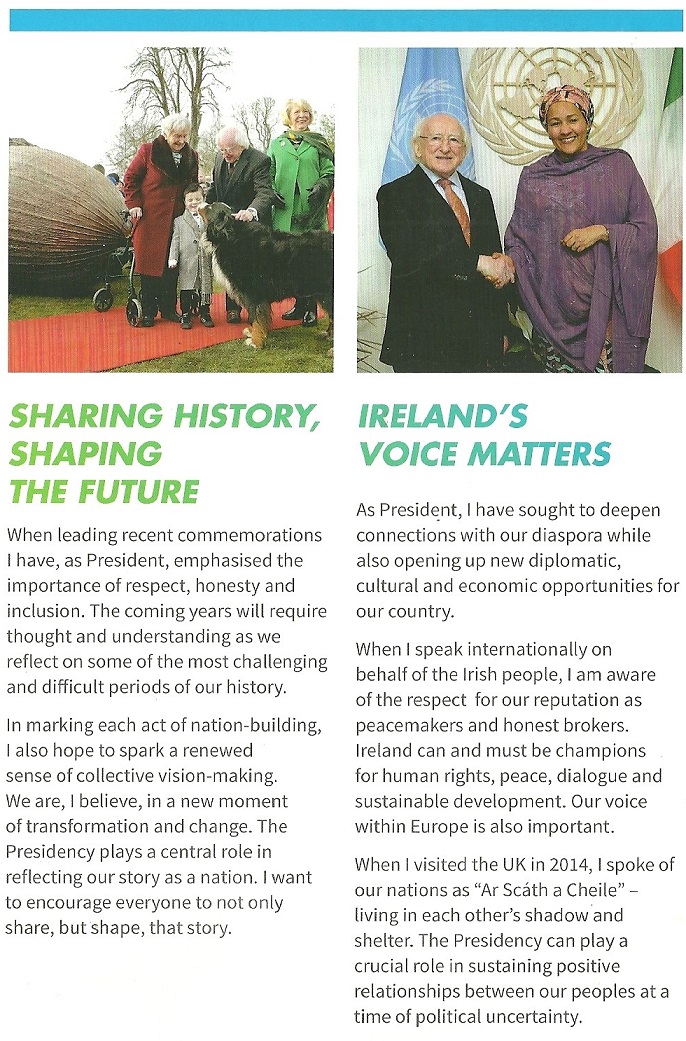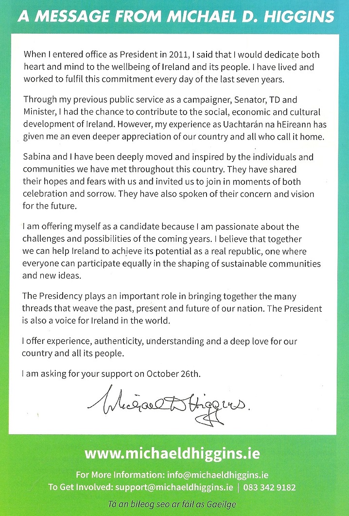 From the 2018 Presidential Election Campaign a leaflet from Michael D. Higgins.