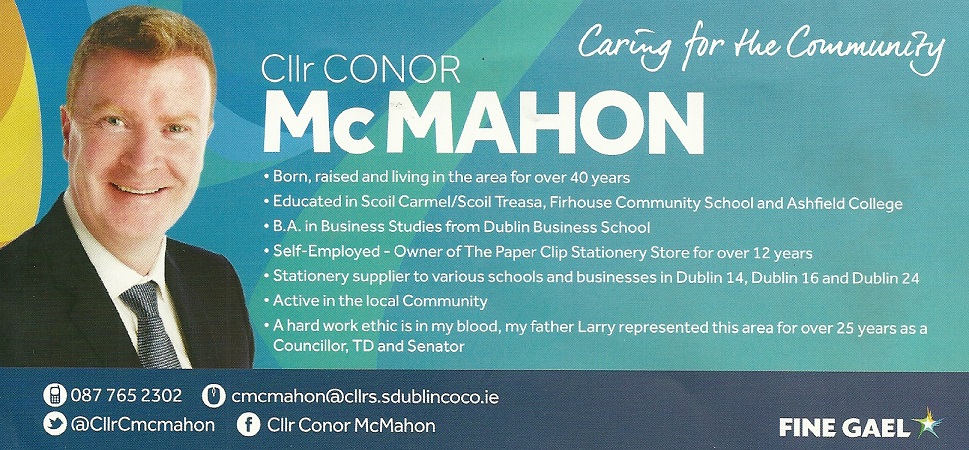 Flyer from Cllr Conor McMahon-Fine Gael -Rathfarnham » ConorMcMahon1