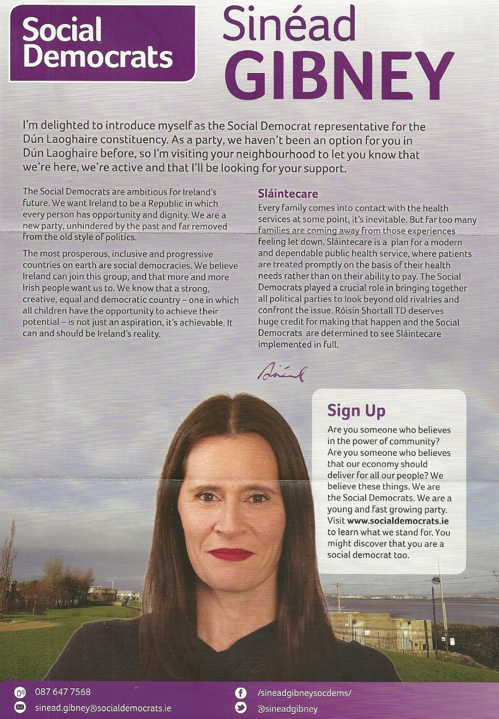 Leaflet from Sinéad Gibney -Social Democrats -Dun Laoghaire » SGibney1