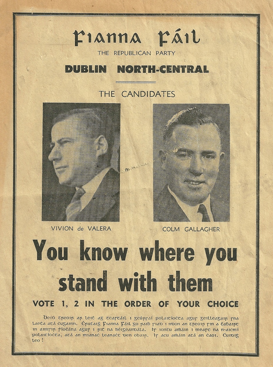 Leaflet from Vivion de Valera and Colm Gallagher -Fianna Fail -1957 General Election -Dublin North Central » 1957VivionDevCGallagher1