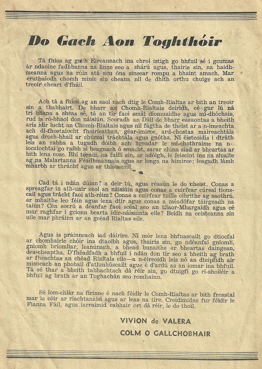 Leaflet from Vivion de Valera and Colm Gallagher -Fianna Fail -1957 General Election -Dublin North Central » 1957VivionDevCGallagher3