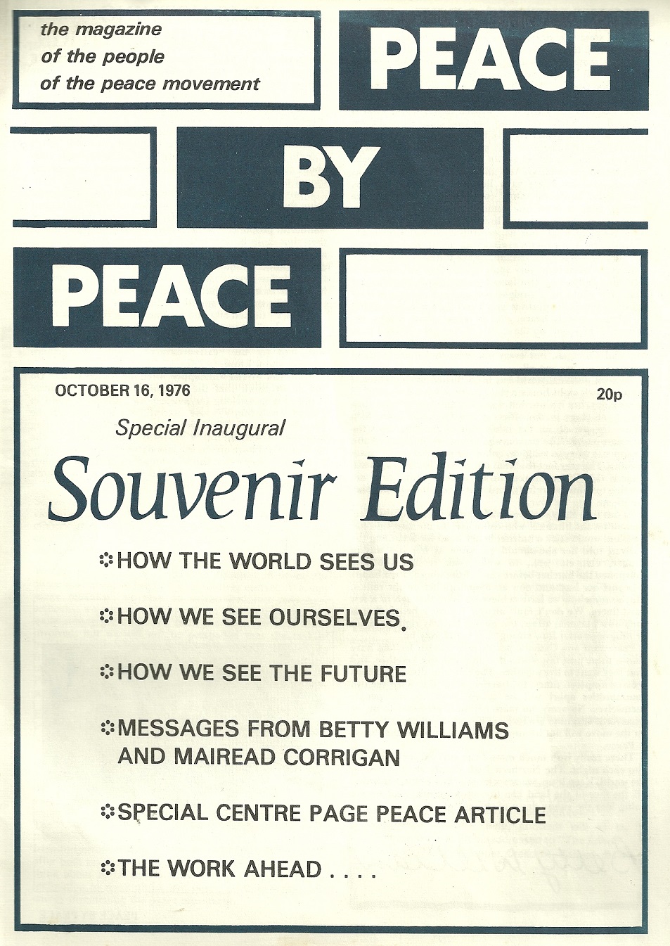 From 1976 “Peace By Peace” The Magazine of Peace People .Issue 1. » peacebypeacecover
