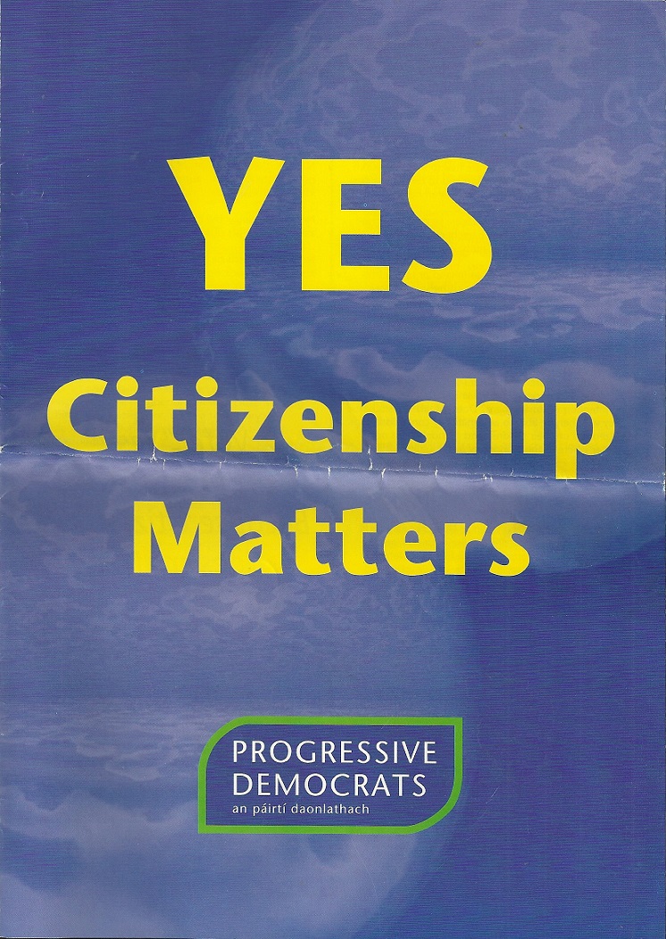 “Yes Citizenship Matters” Leaflet from the Progressive Democrats -2004 Citizenship Referendum » citizenshiprefpds1
