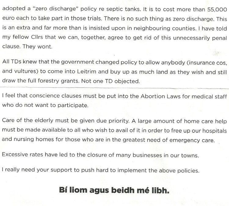 A leaflet from Independent Councillor Des Guckian announcing that he intends standing in the 2019 Local Elections.