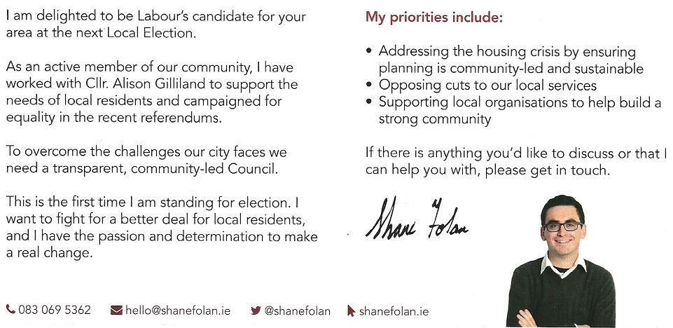 Leaflet from Shane Folan – Labour – Donaghmede #LE19 » ShaneFolan1b