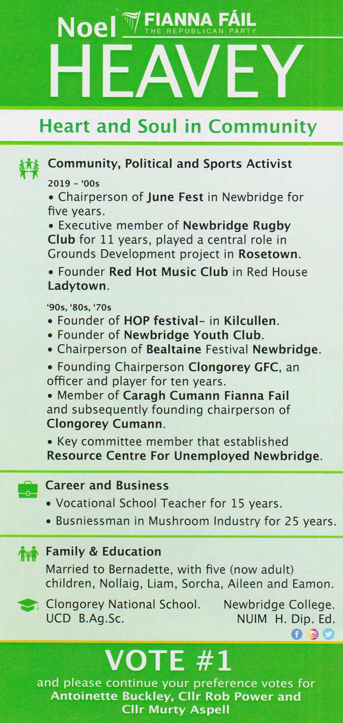 Leaflet from Noel Heavey -Fianna Fail -Newbride/Kildare #LE19 » NoelHeavey2