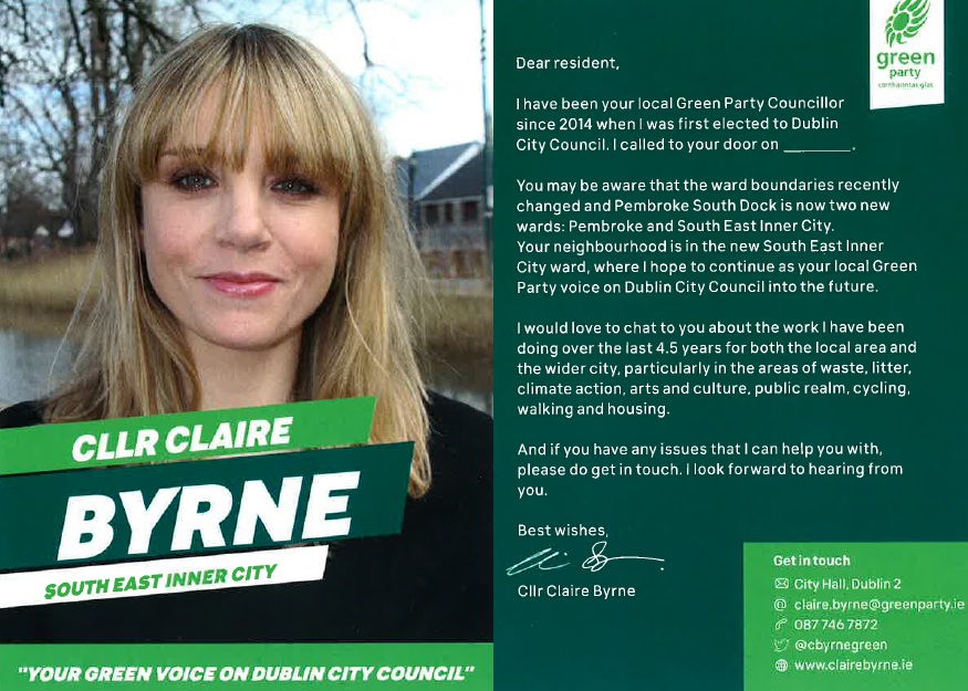Leaflet from Claire Byrne -Green Party- South East Inner City #LE19 » ClaireByrneSEICLE19