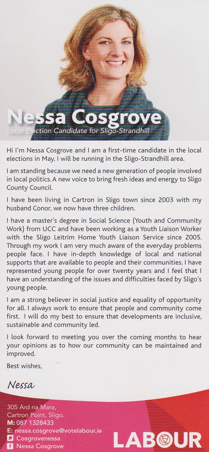 Leaflet from Nessa Cosgrove – Labour – Sligo-Strandhill #LE19 » Nessa Cosgrove (Lab.) b