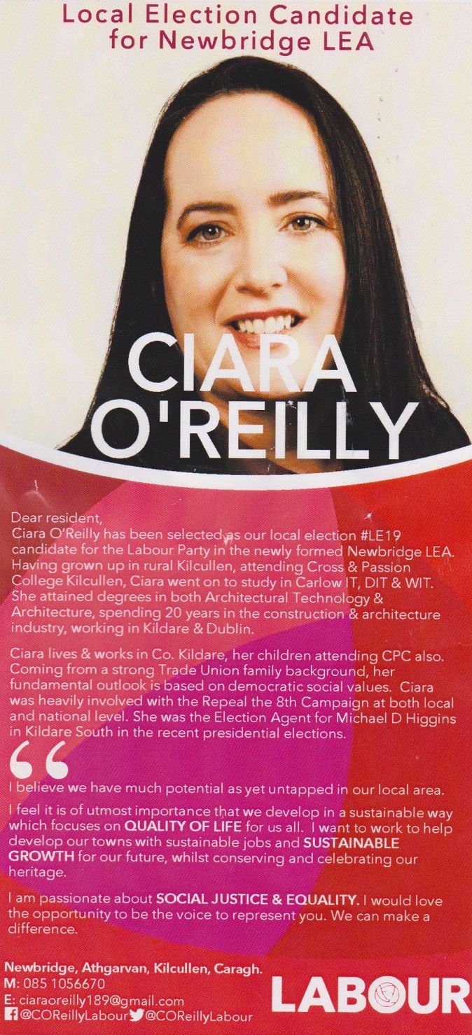 Leaflet from Ciara O’Reilly -Labour – Newbridge #LE19 » CiaraOReilly1