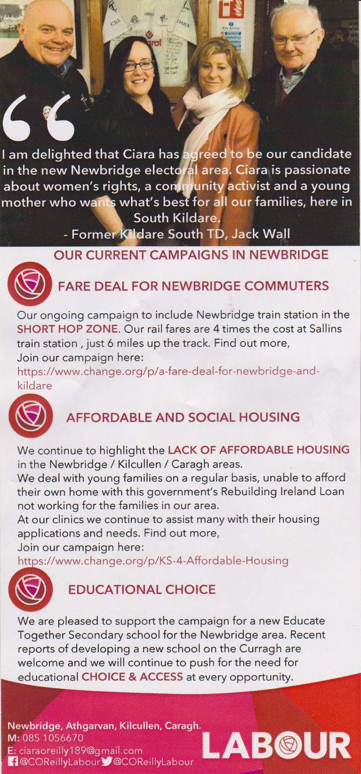Leaflet from Ciara O’Reilly -Labour – Newbridge #LE19 » CiaraOReilly2