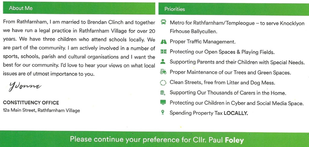 Leaflet from Yvonne Collins -Fianna Fáil -Rathfarnham Templeogue #LE19 » Ycollins2