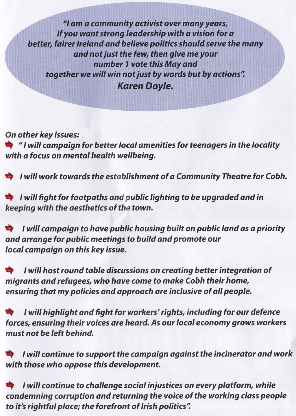 Leaflet from Karen Doyle -Independents4Change – Cobh #LE19 » KarenDoyle3