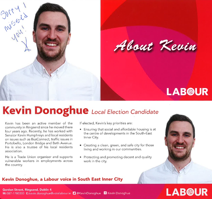 Leaflet from Kevin Donoghue -Labour -South East Inner City #LE19 » KevinDonoghueSIMU