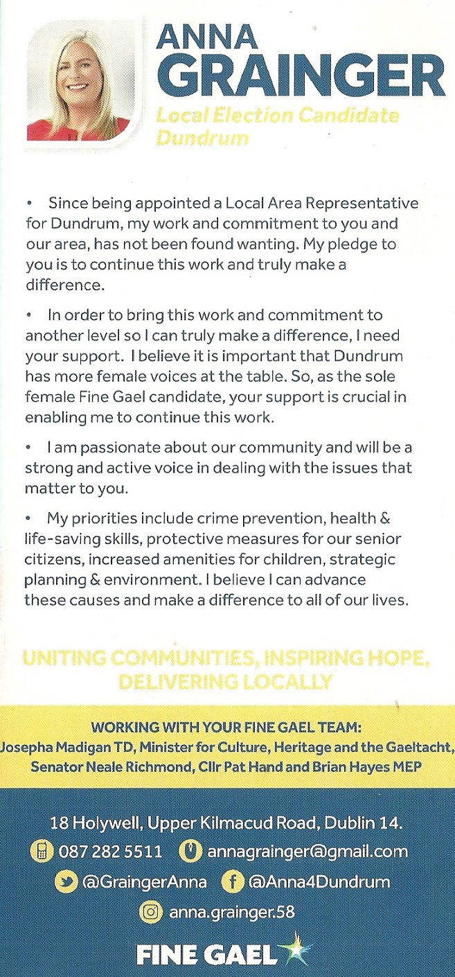 Leaflet from Anna Grainger -Fine Gael -Dundrum #LE19 » AnnaGrainger2