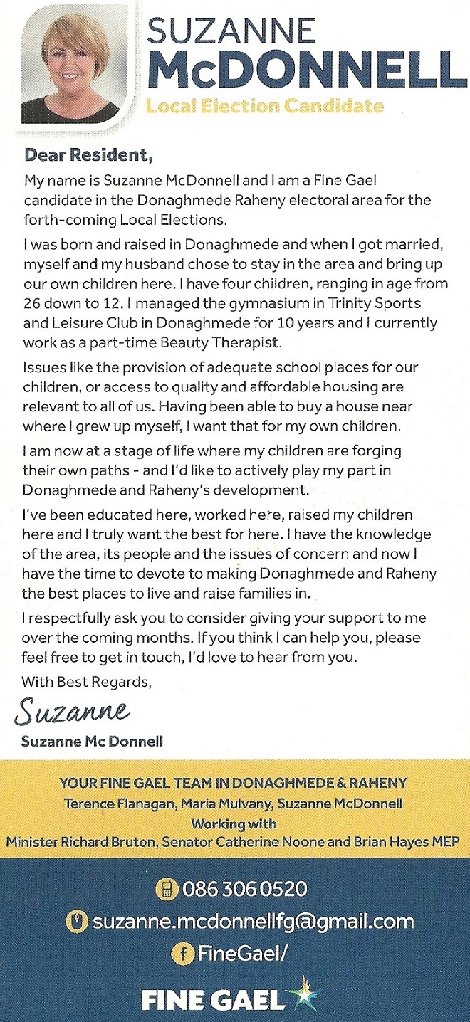 Leaflet from Suzanne McDonnell – Fine Gael – Donaghmede #LE19 » SuzanneMcDonnell2