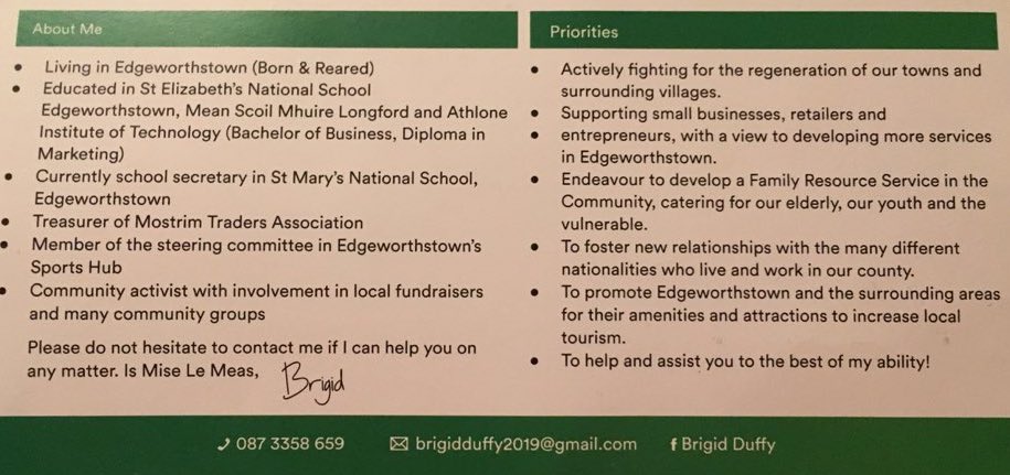 Leaflet from Brigid Duffy – Fianna Fáil – Ballymahon #LE19 » BDuffy2