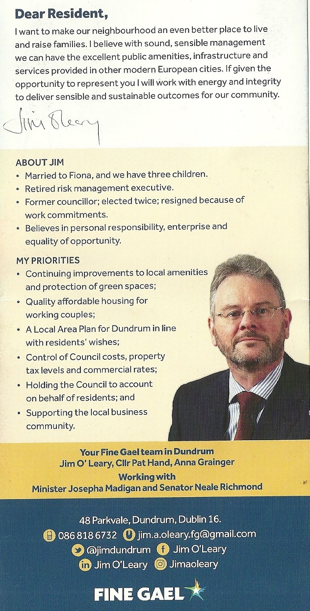 Leaflet from Jim O’Leary – Fine Gael -Dundrum » JimOLeary2