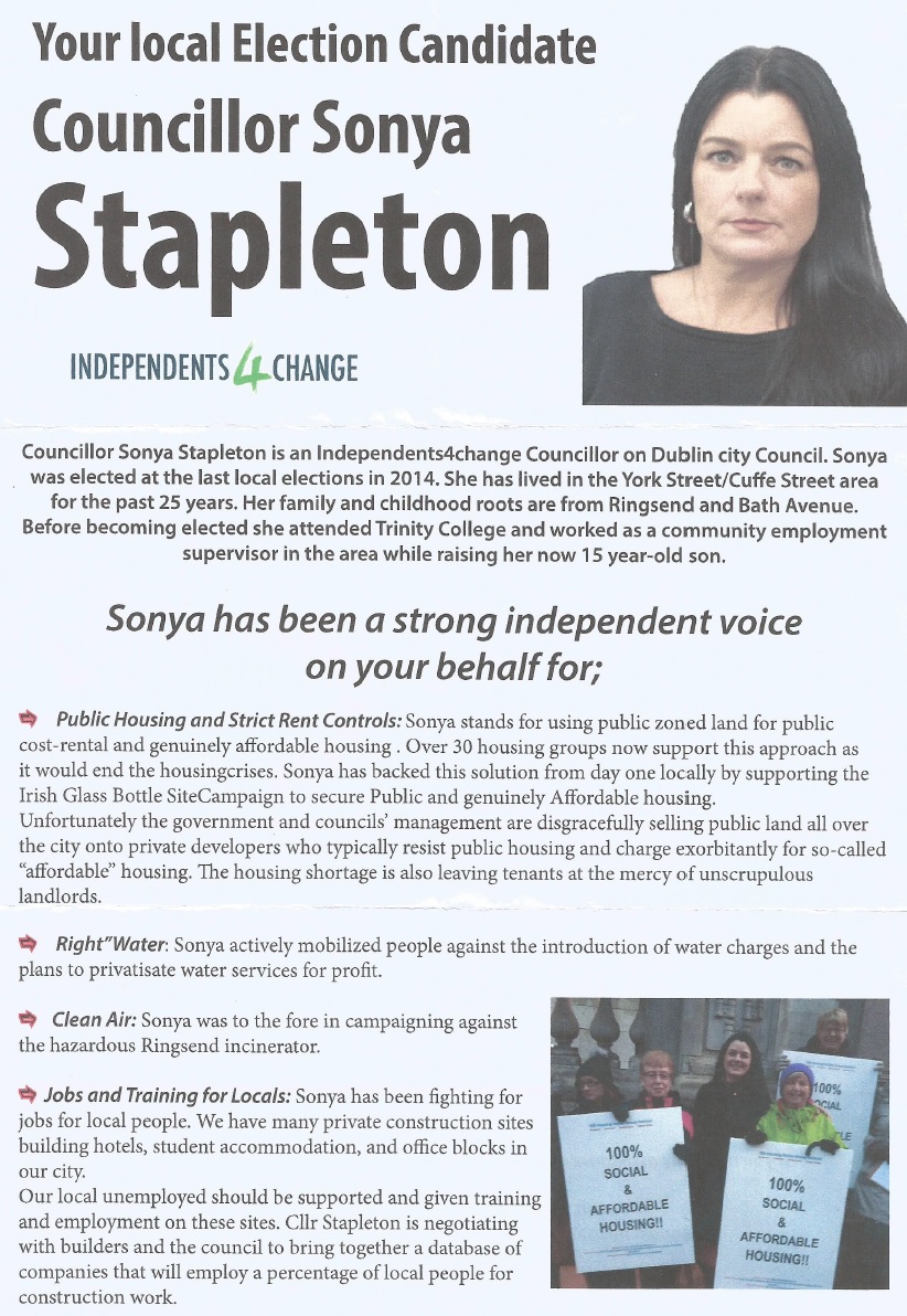 Leaflet from Sonya Stapleton -Independents4Change – South East Inner City #LE19 » SonyaStapleton1