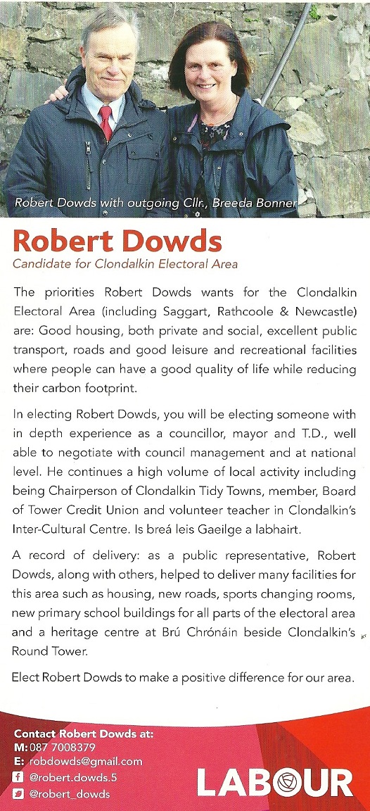 Leaflet from Robert Dowds – Labour – Clondalkin #LE19 » RobertDowds2