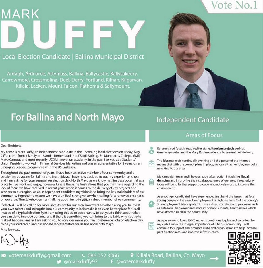 Leaflet from Mark Duffy – Independent – Ballina #LE19 » MArkDuffy1