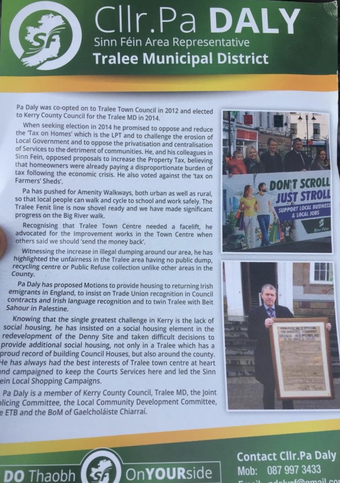 Leaflet from Pa Daly – Sinn Féin -Tralee #LE19 » PaDaly2
