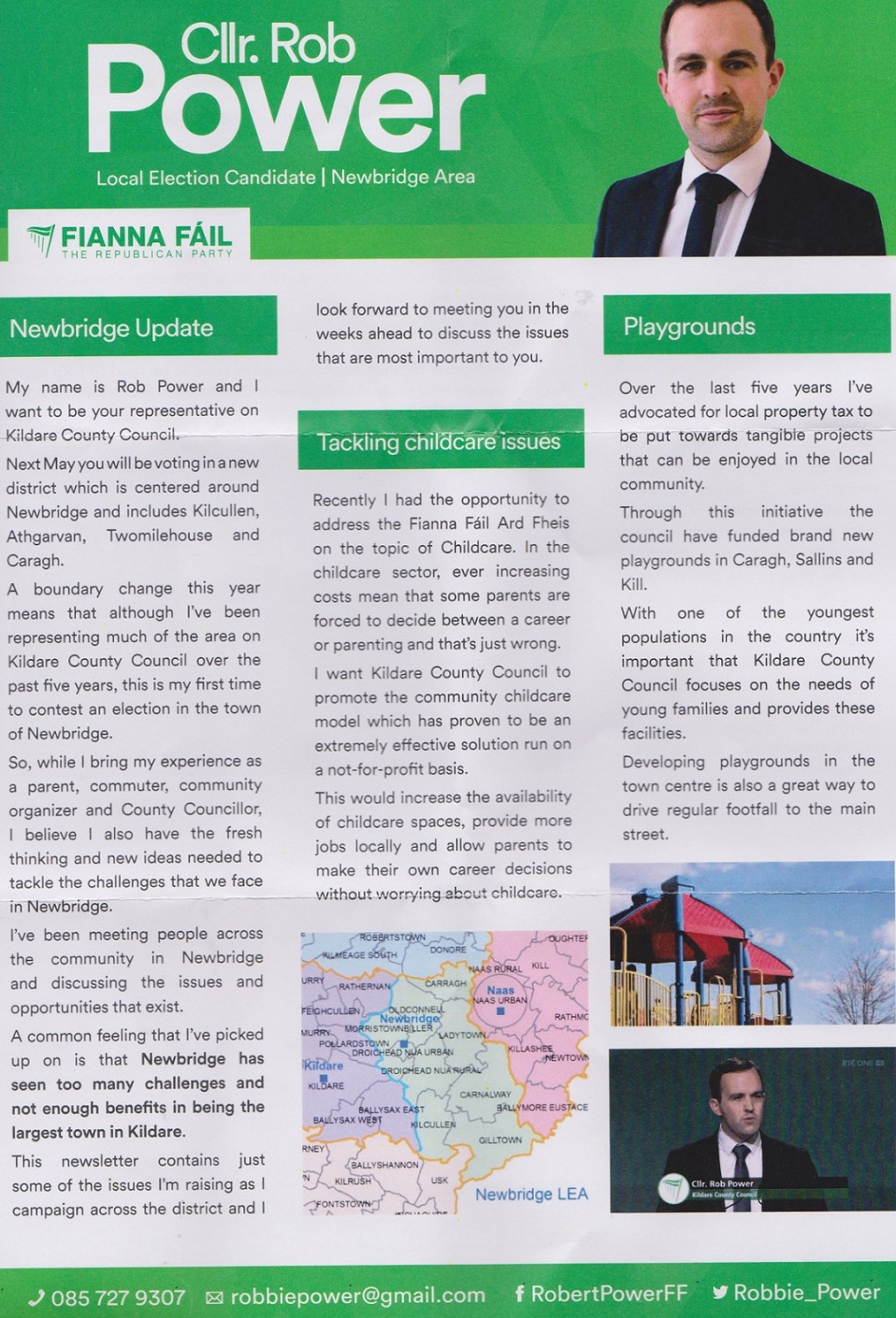 Leaflet from Rob Power -Fianna Fáil – Newbridge #LE19 » RobPower1
