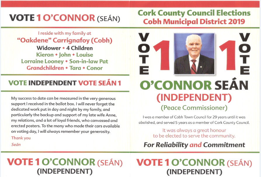 Leaflet from Seán O’Connor -Independent – Cobh #LE19 » Sean O’Connor Cobh front
