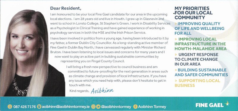 Leaflet from Aoibhinn Tormey -Fine Gael – Howth Malahide #LE19 » atfg2bsm