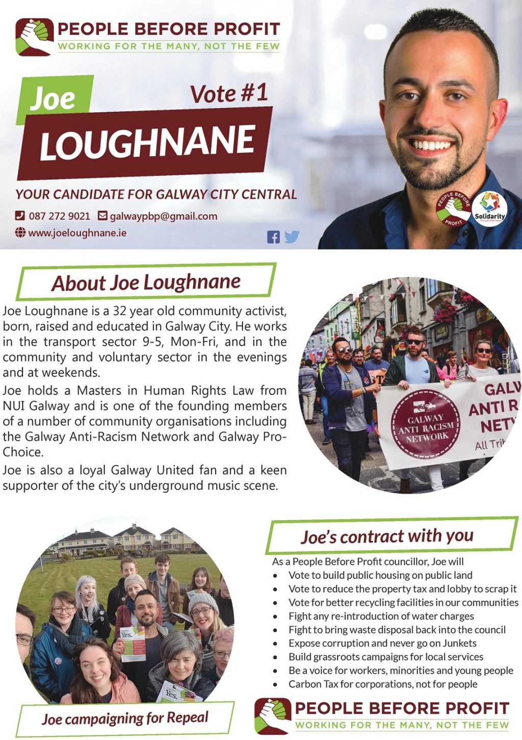 Leaflet from Joe Loughnane – People Before Profit – Galway City Central #LE19 » JoeLoughnane1
