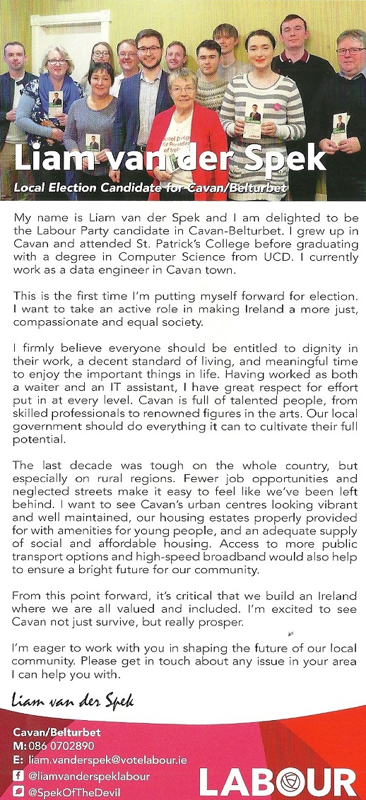 Leaflet from Liam Van Der Spek- Labour – Cavan Belturbet #LE19 » LiamVanDerSpek2