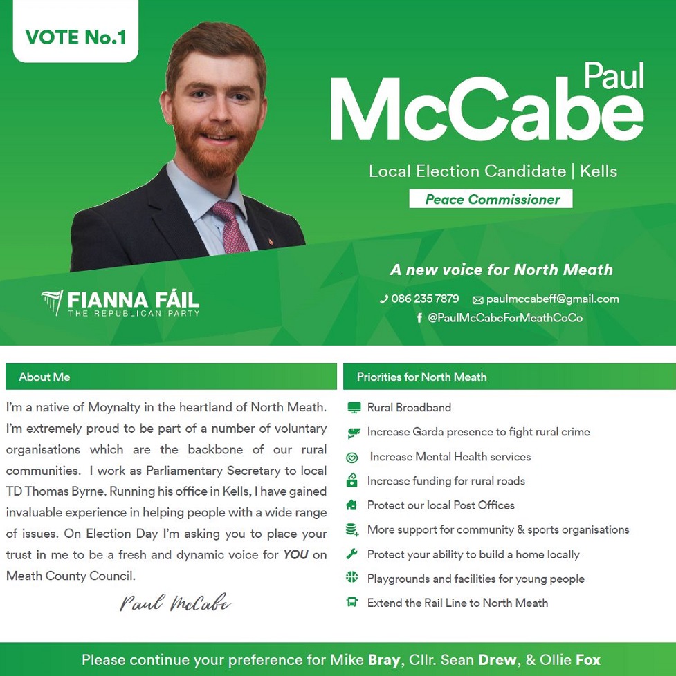 Leaflet from Paul McCabe – Fianna Fáil – Kells #LE19 » mccabe 1