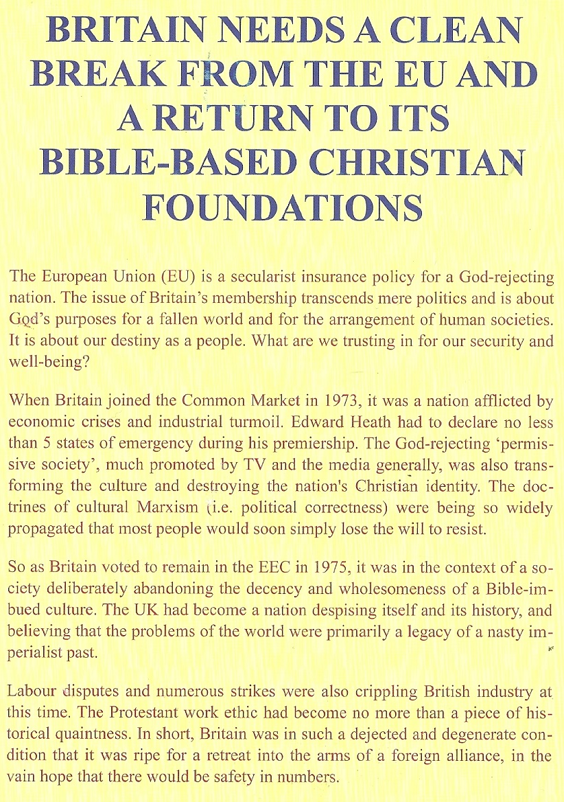 “Britain Needs A Clean Break From The EU And To Return To Its Bible-Based Christian Foundations” #Brexit leaflet » BibleBrexit1