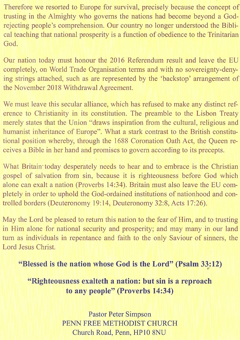 “Britain Needs A Clean Break From The EU And To Return To Its Bible-Based Christian Foundations” #Brexit leaflet » BibleBrexit2