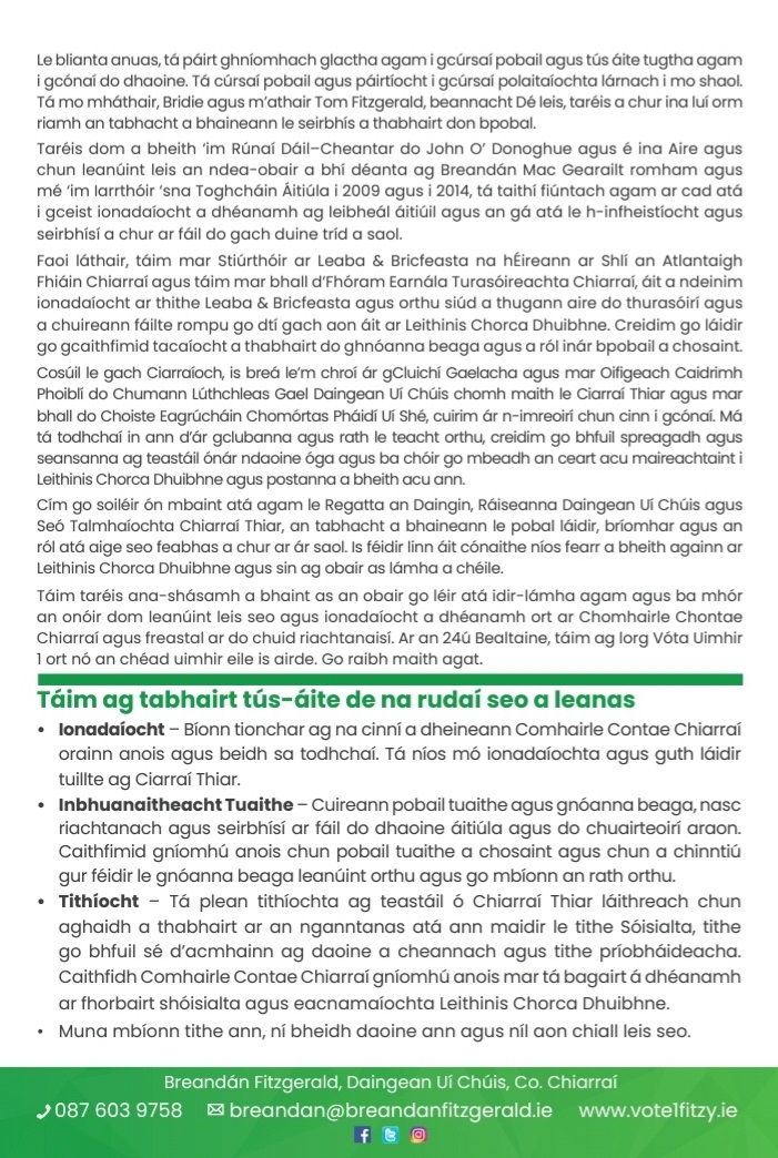 Leaflets as gaelige agus as bearla Breandán Fitzgerald- Fianna Fáil – Dingle #LE19 » BFitgerald1G